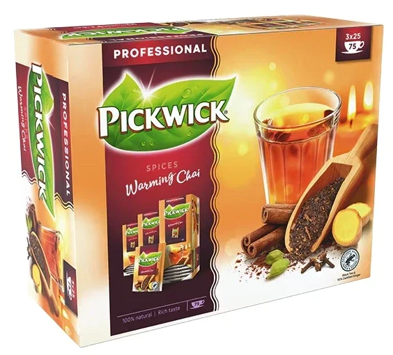 Pickwick Warming Chai is een krachtige en kruidige thee die warmte en diepte combineert met een aromatische zwarte theebasis. Deze melange biedt een volle, rijke smaakbeleving die zowel verwarmend als stimulerend is.